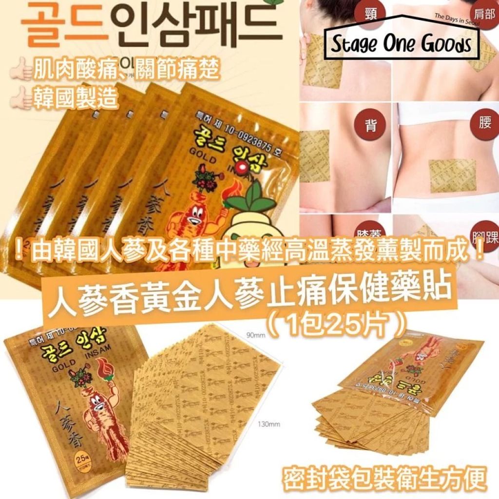 26/2❤️ 新春優惠場❤️人蔘香黃金人蔘舒緩鎮痛藥貼(25片)🌈滿380包郵